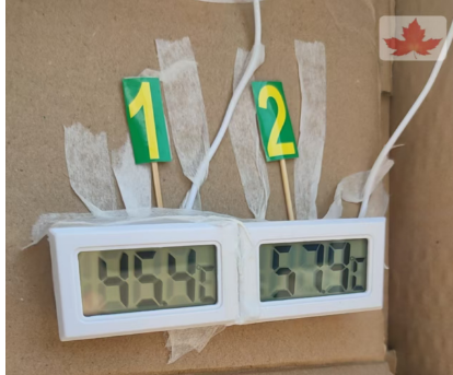 夏浩桐同學(xué)告訴記者:“去年秋天,我們觀賞紅楓葉時(shí),偶然發(fā)現(xiàn)路兩側(cè)的五角楓樹(shù)干出現(xiàn)了蛻皮壞死現(xiàn)象。寒假期間,我們又對(duì)整條路的五角楓進(jìn)行了全面觀察和統(tǒng)計(jì),發(fā)現(xiàn)壞死率竟然超過(guò)了65%。于是,我們就這個(gè)現(xiàn)象與學(xué)校張真老師進(jìn)行了討論。張老師非常支持,很快便成立了由她和我們四位學(xué)生組成的‘五角楓實(shí)驗(yàn)小組’。”“我們小組多次實(shí)地調(diào)查、現(xiàn)場(chǎng)測(cè)試后發(fā)現(xiàn),在夏季太陽(yáng)直射下,五角楓樹(shù)皮西側(cè)和南側(cè)的溫度差異巨大。比如現(xiàn)在下午3點(diǎn),我們測(cè)得南側(cè)(1號(hào)線(xiàn))電子測(cè)溫計(jì)顯示45.4℃,而西側(cè)(2號(hào)線(xiàn))測(cè)溫計(jì)則顯示高達(dá)57.9℃,兩側(cè)溫差達(dá)到了12.5℃。”夏浩桐繼續(xù)說(shuō)道,“我們小組經(jīng)過(guò)多次測(cè)試、記錄數(shù)據(jù),并查閱了大量資料,還借助了‘豆包’等AI工具進(jìn)行分析,最終發(fā)現(xiàn)了一些資料提到了‘日灼病’,即因太陽(yáng)輻射溫度過(guò)高而導(dǎo)致的植物曬傷。我們認(rèn)為,這里的五角楓很可能就是患上了日灼病。”