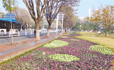 “為營造四季有花的城市綠化環(huán)境,市城管局園林處每年都要引進100余萬盆花草,分別于4月中旬、7月中旬、9月下旬、11月下旬進行栽植。”市城管局園林處相關(guān)責任人告訴記者,結(jié)合花草季節(jié)生長特點,選擇適應性強、花期長、耐高溫、耐嚴寒,具有極高觀賞性的一串紅、國慶菊、雞冠花、孔雀草、垂吊牽牛、萬壽菊、羽衣甘藍等栽植。今年又引進了7萬余株角堇,進行實驗性栽種,經(jīng)過一個冬季,檢驗其是否適應我市的氣候,為下一步推廣奠定基礎(chǔ)。