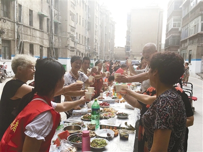 在一片歡聲笑語中,居民們在一起度過了晚餐時(shí)間,桌子上幾乎所有的菜都被吃完。“這才是家常便飯,今天這頓飯吃得得勁。”活動臨近結(jié)束,不少居民端著自家的空盤子,高興地說。