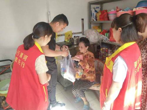 經(jīng)濟(jì)技術(shù)開發(fā)區(qū)湘江路新區(qū)湘江路社區(qū)的工作人員看望轄區(qū)生活困難的居民