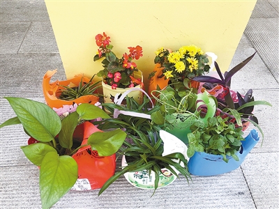 市民王女士說:“保潔員大姐手真巧,將不用的洗衣液桶變成花盆,種上花擺在衛(wèi)生間門口,讓人眼前一亮。”