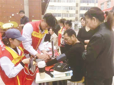 10月12日,源匯區(qū)老街街道開展“紅周六 志愿行”活動(dòng),志愿者到各小區(qū)義診、清理雜物、宣傳安全知識(shí)。記者 于文博 攝