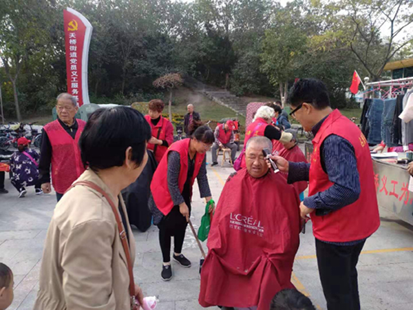 漓江路社區(qū)志愿者為社區(qū)居民理發(fā)