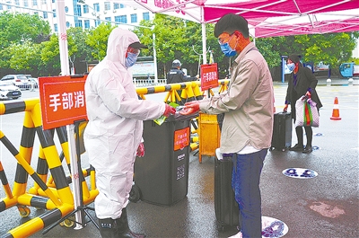 “媽媽再見,放心吧,我會照顧好自己的!”來自許昌的程佳寶同學(xué)到了學(xué)校門口后,和爸媽擁抱惜別,然后進(jìn)入測溫消毒防疫通道,進(jìn)行身份核驗(yàn)、體溫測量、行李消毒、更換口罩、手部消毒后,進(jìn)入闊別已久的校園。