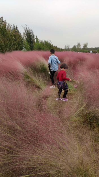 網(wǎng)紅粉黛亂子草進入盛開期,吸引到眾多游人來打卡。為拍出來的照片好看,一些游客鉆進花海取景,硬生生踩出多條小路,大片粉黛亂子草因此枯死,在此提醒大家記得文明出游。