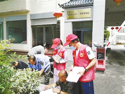 志愿者走進(jìn)小區(qū)開(kāi)展創(chuàng)文調(diào)查。