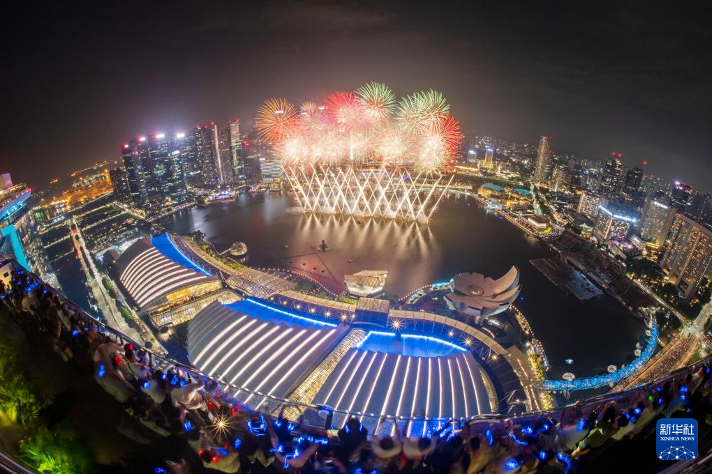 2024年1月1日凌晨,焰火在新加坡濱海灣舉行的跨年活動(dòng)中綻放。