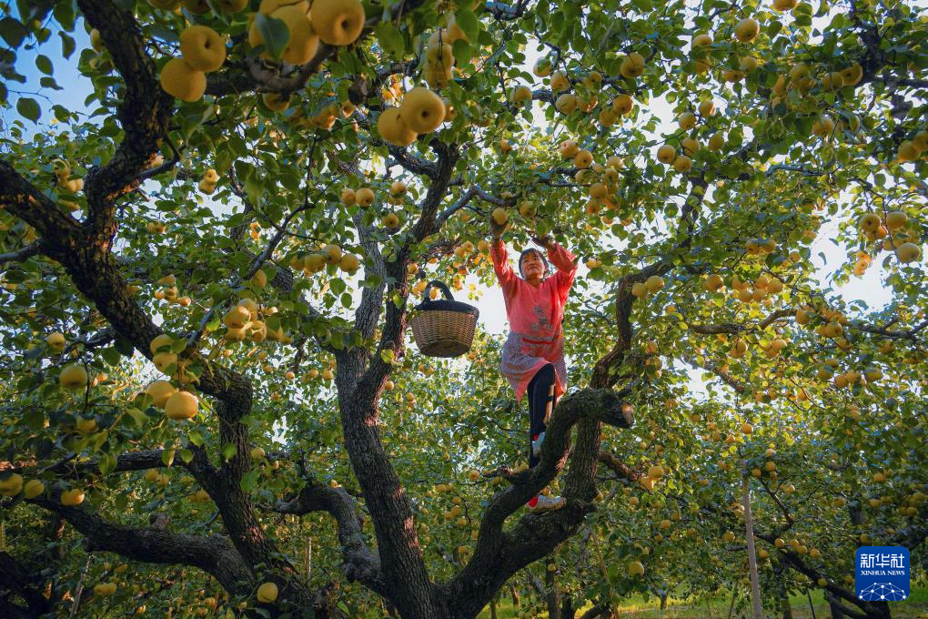 10月4日,安徽省宿州市碭山縣程莊鎮(zhèn)衡樓村梨農(nóng)在梨園里采摘、分揀酥梨。