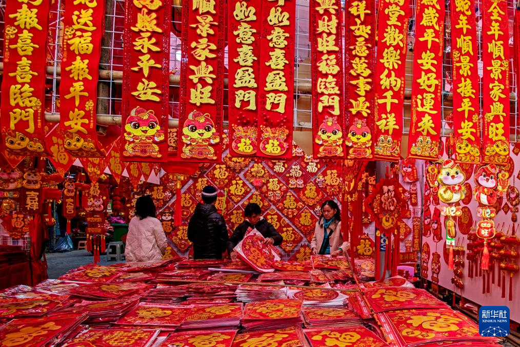 1月12日,市民在廣西南寧市上海路年貨市場(chǎng)選購(gòu)新春飾品。