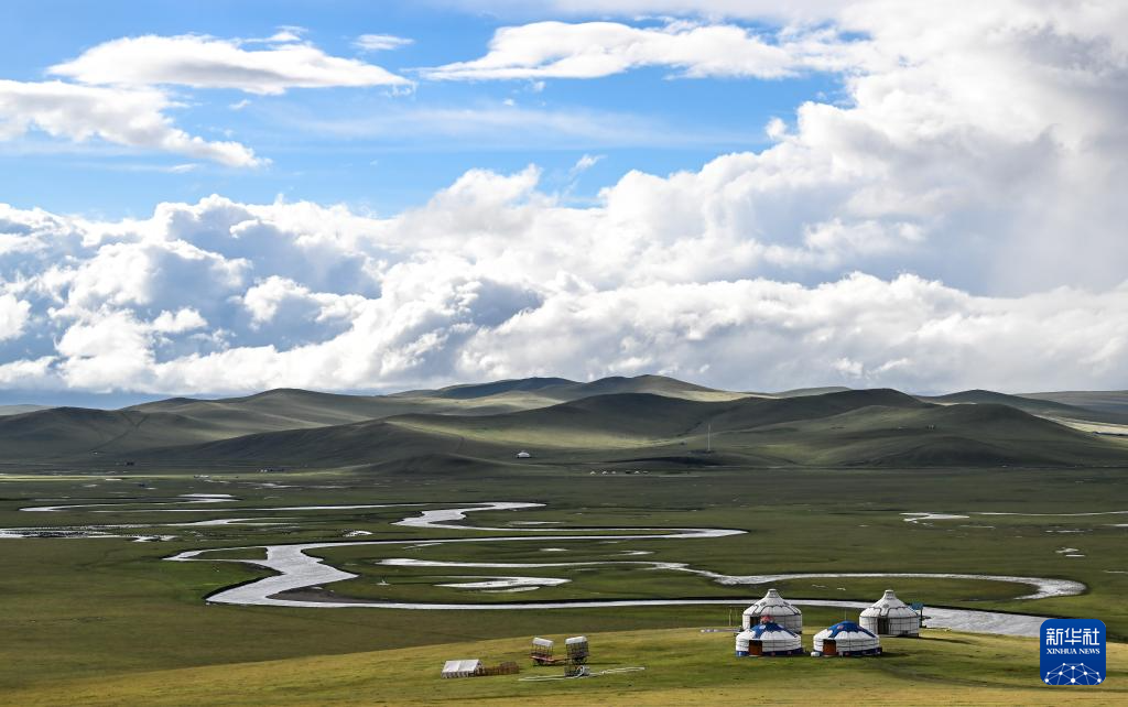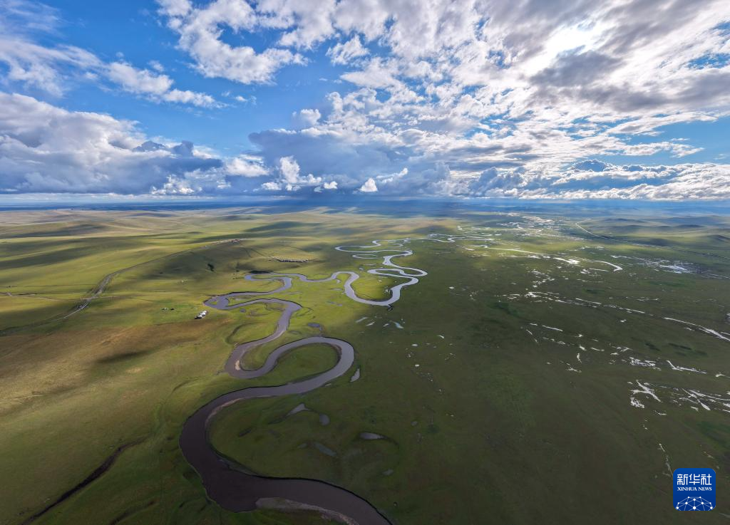 9月14日拍攝的內(nèi)蒙古呼倫貝爾市陳巴爾虎旗草原上的莫爾格勒河(無(wú)人機(jī)照片)。