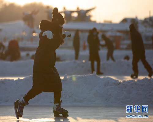 無人機航拍哈爾濱松花江上樂享冰