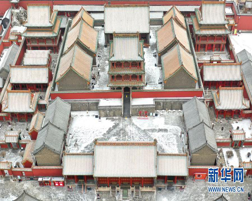無人機航拍雪后沈陽故宮 氣勢恢