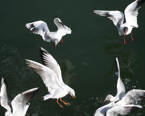 攝影師抓拍鷗鳥翔集黃河水岸 帶