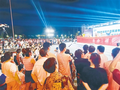 7月12日晚,西城區(qū)市民之家南門廣場燈火璀璨、人潮涌動。漯河市首屆非遺展演年活動七月第二場展演在此拉開帷幕。演出以“童真非遺”為主題,將我市兩個極具代表性的非遺項目——嗩吶咔戲與木偶戲搬上舞臺,以童趣化演繹展現(xiàn)傳統(tǒng)藝術(shù)的魅力。